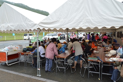 昼食は小田米炊き込み、うどん、お餅をいただきます