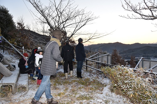 初日の出 山際が染まり始めました