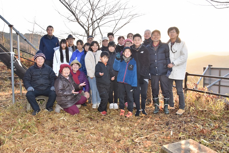 雲のすきまから朱色の太陽が徐々に現れ小田の里を照らし初めると、参加された方は、今年1年の抱負を胸に手を合わせていました。